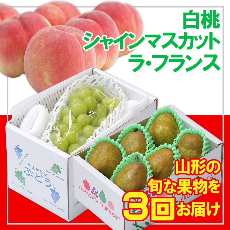 【定期便3回】☆フルーツ王国山形☆白桃・シャインマスカット・ラフランス FY25-053