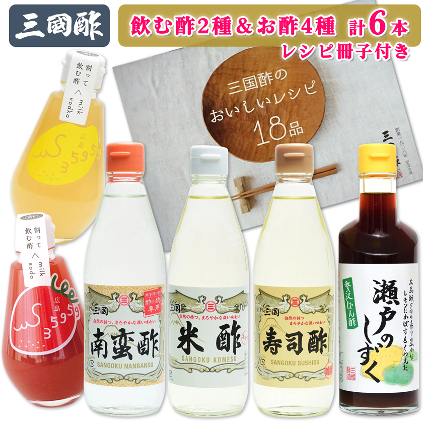 三国酢 詰め合わせセット (6種 各1本 レシピ冊子付き) 飲む酢も楽しめる|瀬戸のしずく ポン酢 寿司 米 南蛮 35959su 35959酢 6本 セット 調味料 ビネガー ドレッシング まろやか 香り 味わい 熟成 発酵 ヘルシー クエン酸 広島 大竹市 ギフト 贈り物 お取り寄せ 贈答 [1999]