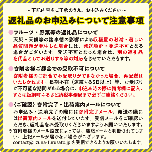 その年の天候や生育状況により予告なくお届け時期が前後する場合がありますがご了承ください。