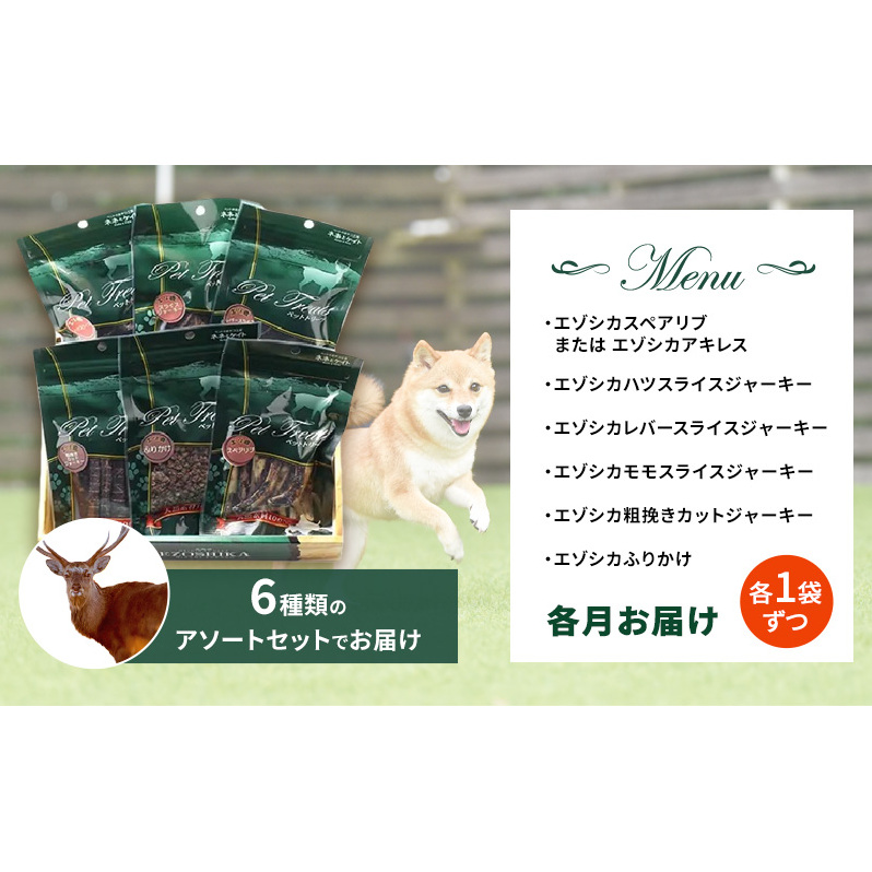 ◆6ヶ月連続◆エゾシカ肉を使った愛犬のおやつ定期便 南富フーズ株式会社 鹿肉 ジビエ 餌 犬 猫 鹿 詰め合わせ ペット 健康 無添加 肉 北海道 南富良野町 エゾシカ 肉の加工品 お肉 愛犬用 ペットフード 6回 半年