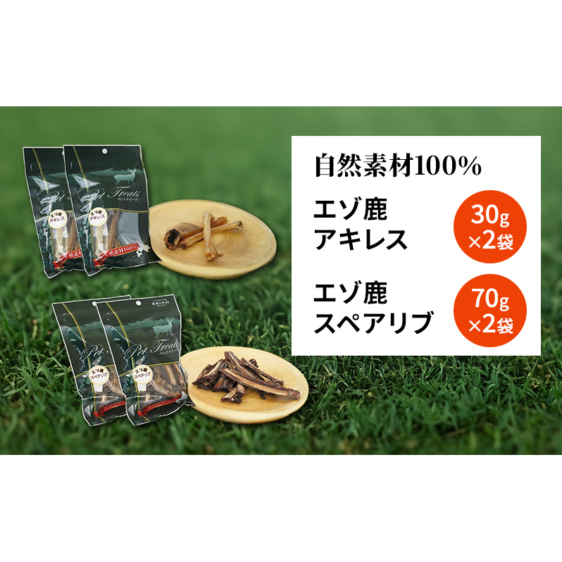 犬 おやつ セット【 アキレス 30g×2袋 スペアリブ 70g×2袋】歯磨き 肉付き ストレス解消 森のジビエ 鹿肉 ペットフード 猫 愛犬 動物 犬 ドッグ ペット フード 餌 エサ おやつ 乾物 ごはん ご飯 間食 ご褒美 ペット関係