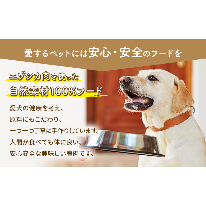 人間が食べても体に良い、安心安全な美味しい鹿肉を、ペット用フードにしました。
