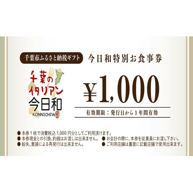 今日和プレミアムお食事券(5,000円分)【 お食事券 チケット パスタ おいしい 千葉 フードロス レストラン 】