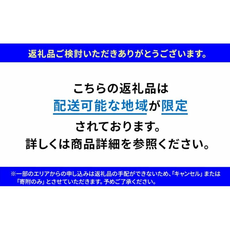 ※一部のエリアからの申し込みは返礼品の手配が出来ないため、「キャンセル」または「寄附のみ」とさせていただきます。予めご了承ください。