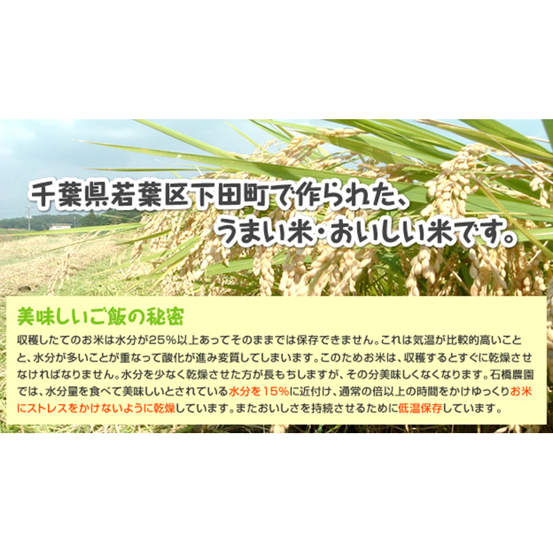 千葉県千葉市で種まき、田植えから稲刈り、乾燥、もみすり、精米まですべて石橋農園にて行っております。