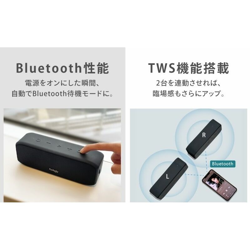 スピーカー FUNLOGY Portable black ポータブルスピーカー Bluetooth 無線 ワイヤレススピーカー 高音質 小型 防水 バッテリー 内蔵 充電式 コンパクト ポータブル ワイヤレス TWS アウトドア お風呂 音響 オーディオ 家電 千葉 千葉県 千葉市