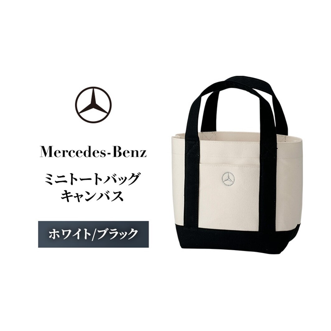 ミニトートバッグ キャンバス ホワイト/ブラック メルセデス ベンツ