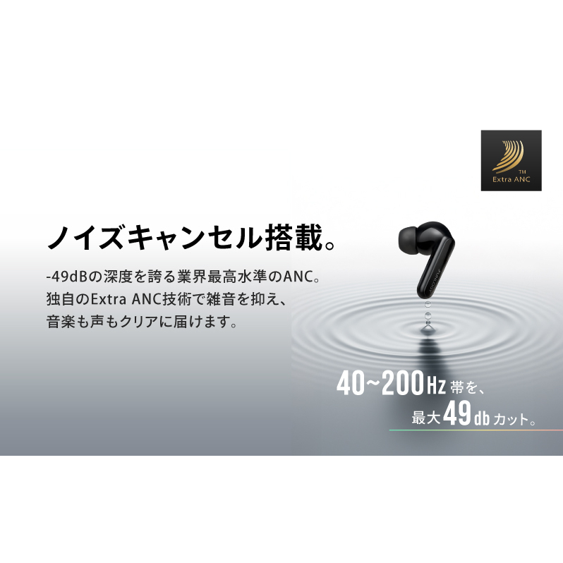 10mmチタン+ポリウレタン複合ドライバーと最大‐49dB低減のExtra ANCが、電車の騒音も街の喧騒もかき消す。外音取り込みもワンタッチで切替可能。通勤・通学も、自宅のリラックスタイムも、理想の音環境へ。