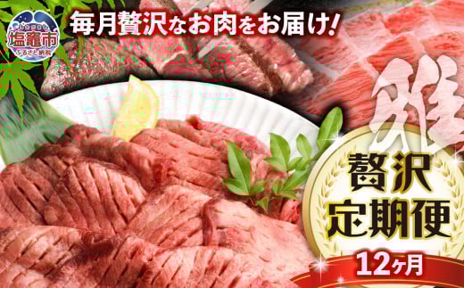 12か月間(1年間)、毎月上質な国産牛タンと宮城県の誇る「仙台牛」の各部位が届く贅沢定期便です。