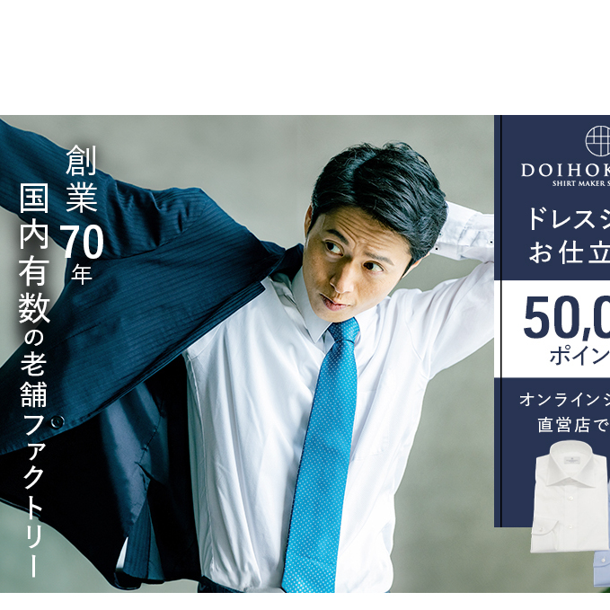 シャツ オーダー ドレスシャツ 土井縫工所 オンラインショップ、直営店で使えるクーポン 50,000ポイント分 ワイシャツ メンズ ビジネス 日本製 オーダーメイド ファッション 服 男性 チケット