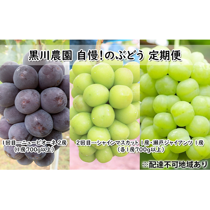 ぶどう 2025年 先行予約 定期便 2回 先行予約 黒川農園 自慢!の 大粒 大房 ニューピオーネ 2房 シャインマスカット 1房 瀬戸ジャイアンツ 1房 詰め合わせ (各1房700g以上)フルーツ 果物 ギフト