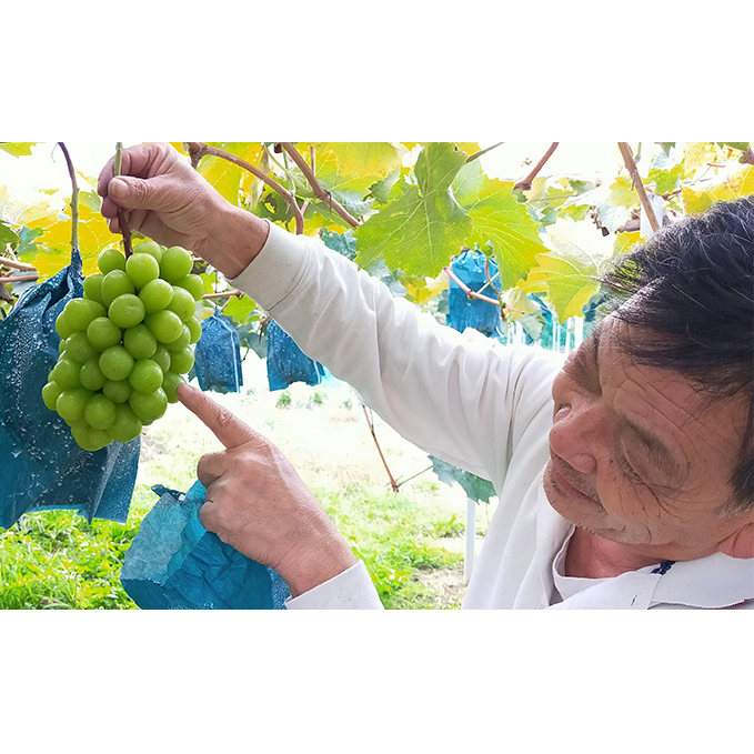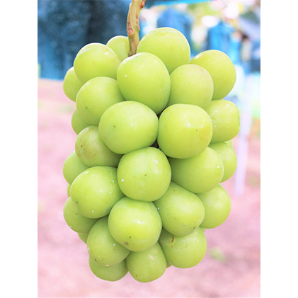 シャインマスカットは肉質は硬く、芳醇な香りと味わい、種がなく皮ごと食べられる貴重なぶどう。