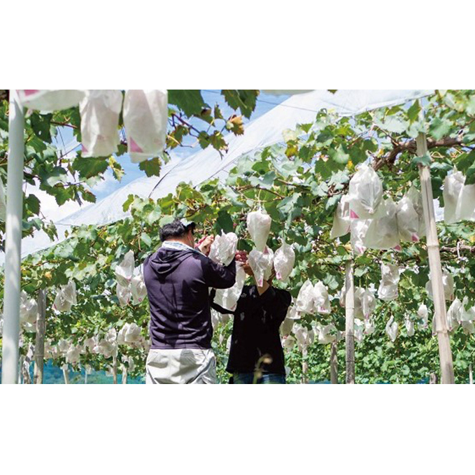 早朝の涼しい時間に収穫することで、ジューシーでハリのあるぶどうになります。