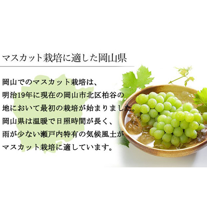 岡山でのマスカット栽培は、明治19年(1886年)に現在の岡山市栢谷の地において最初の栽培が始まりました。