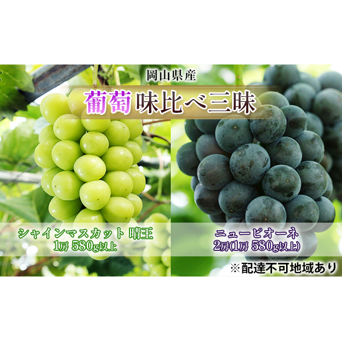 ぶどう 2026年 先行予約 葡萄 味比べ三昧 シャイン マスカット 晴王 1房 580g以上 ニュー ピオーネ 2房(1房 580g以上)(ハウス栽培)詰合せ ブドウ 葡萄 岡山県産 国産 フルーツ 果物 ギフト