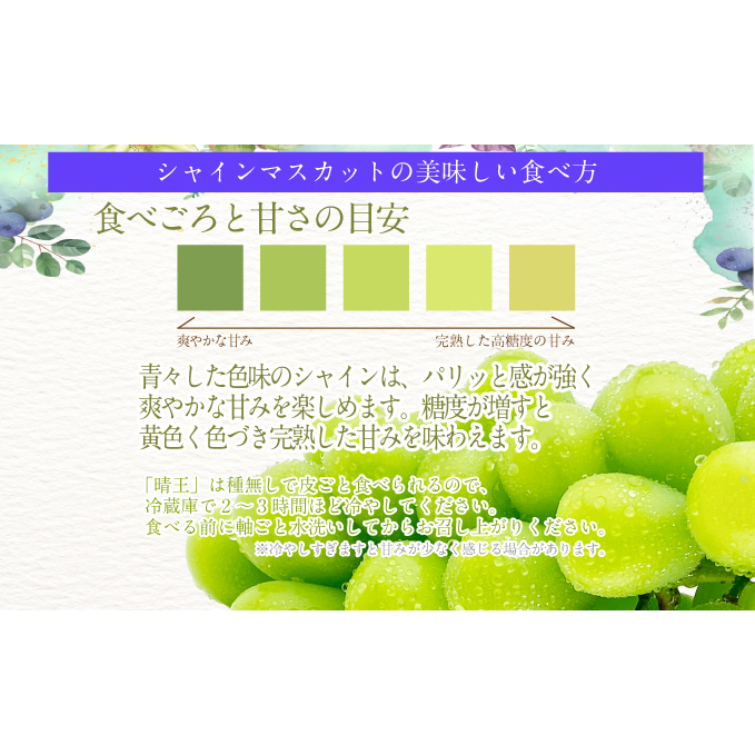 晴の国岡山県の自然が育む上質なシャインマスカット晴王を、ぜひご堪能ください。