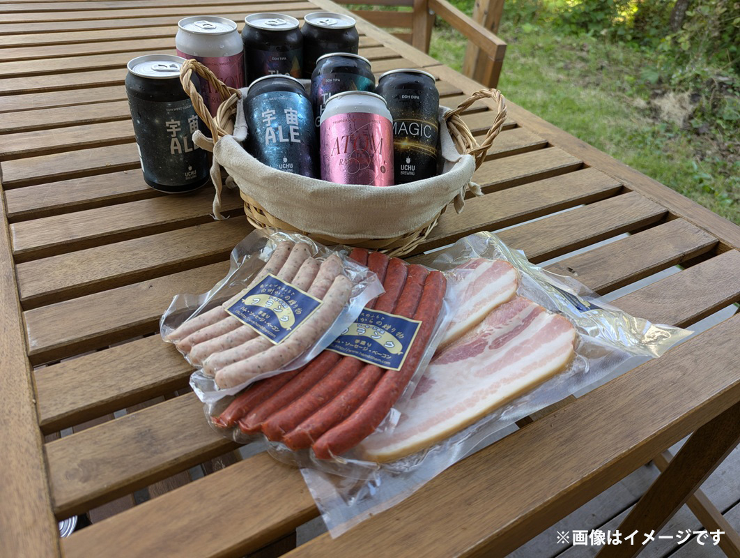 うちゅうブルーイング クラフトビール8本と名水百選で知られる白州の手作りソーセージ3種セット