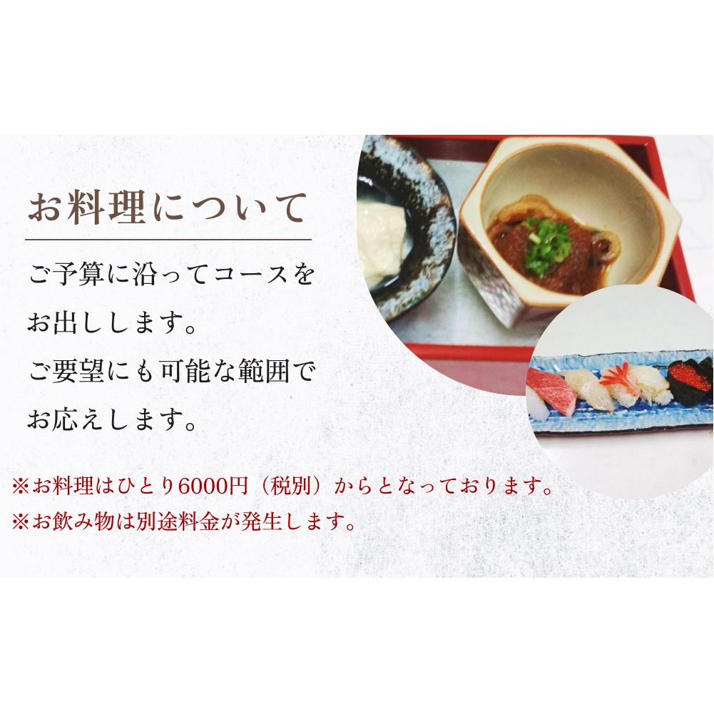 6000円コースの場合:5、6品と握り寿司8貫のご提供