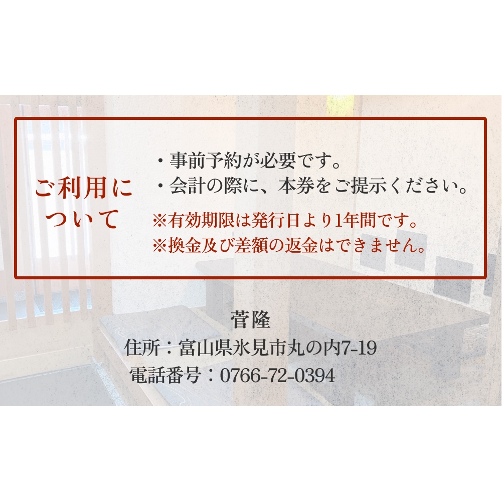 富山県氷見市にある「菅隆」で使える食事補助券です。