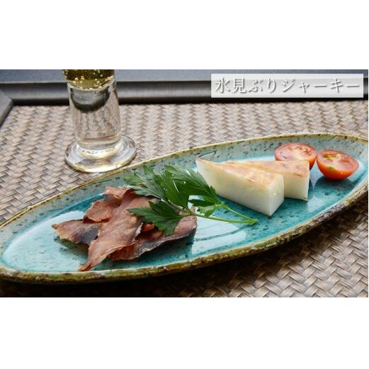 「氷見ぶりジャーキー」は塩と砂糖で水分を抜き、じっくり干しあげたことで凝縮されたブリの旨みがお手軽にお楽しみいただける一品です。噛めば噛むほどに風味が広がります。