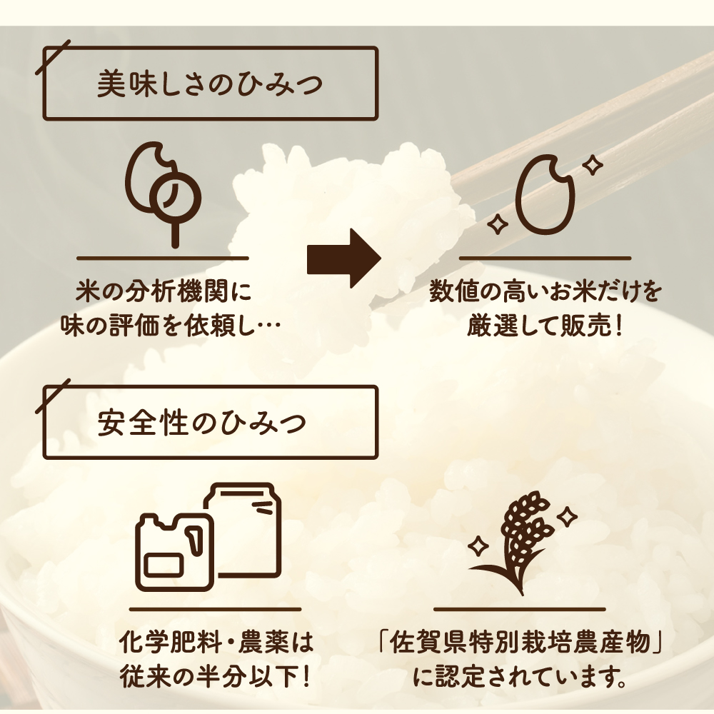 「安全性」に関しては、化学肥料・農薬を従来の半分以下に抑えて栽培された農産物のみに与えられる「佐賀県特別栽培農産物」に認定されています。