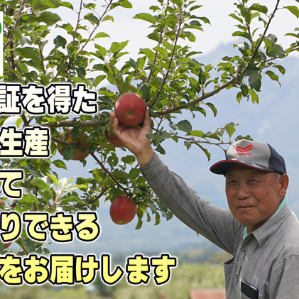 太陽の恵みをいっぱい浴びた葉取らずりんご、JGAP認証を得た農場で生産 した、安心して丸かじりできるりんごです。