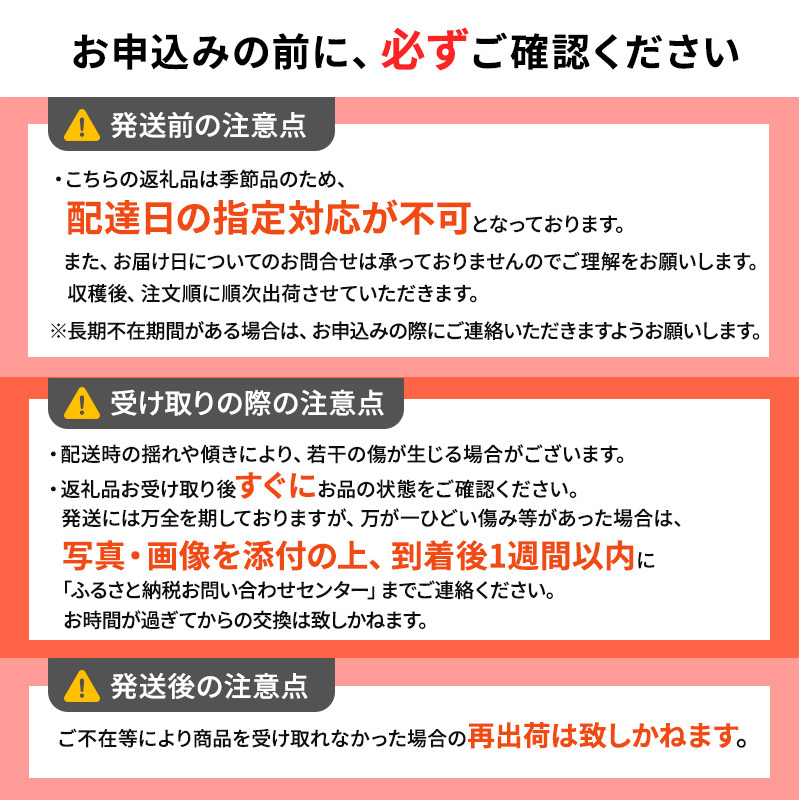 ※季節品のため配送日時指定やお届け日についてのお問合せは承っておりません。収穫後、注文順に順次出荷いたします。