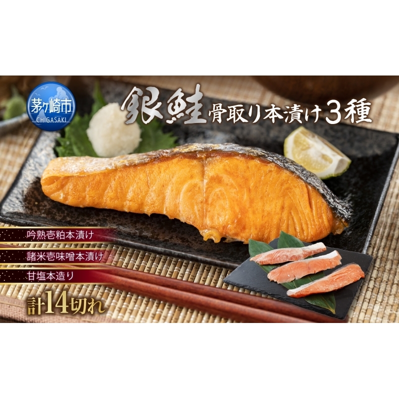 銀さけ 骨取り 本漬け セット 3種 14切 鮭 サケ さけ シャケ しゃけ 魚 さかな サカナ 漬け魚 銀鮭 粕 味噌 おかず 本格的 手軽 お弁当 朝食 プレゼント ギフト 贈答 送料無料 【 茅ヶ崎市 】
