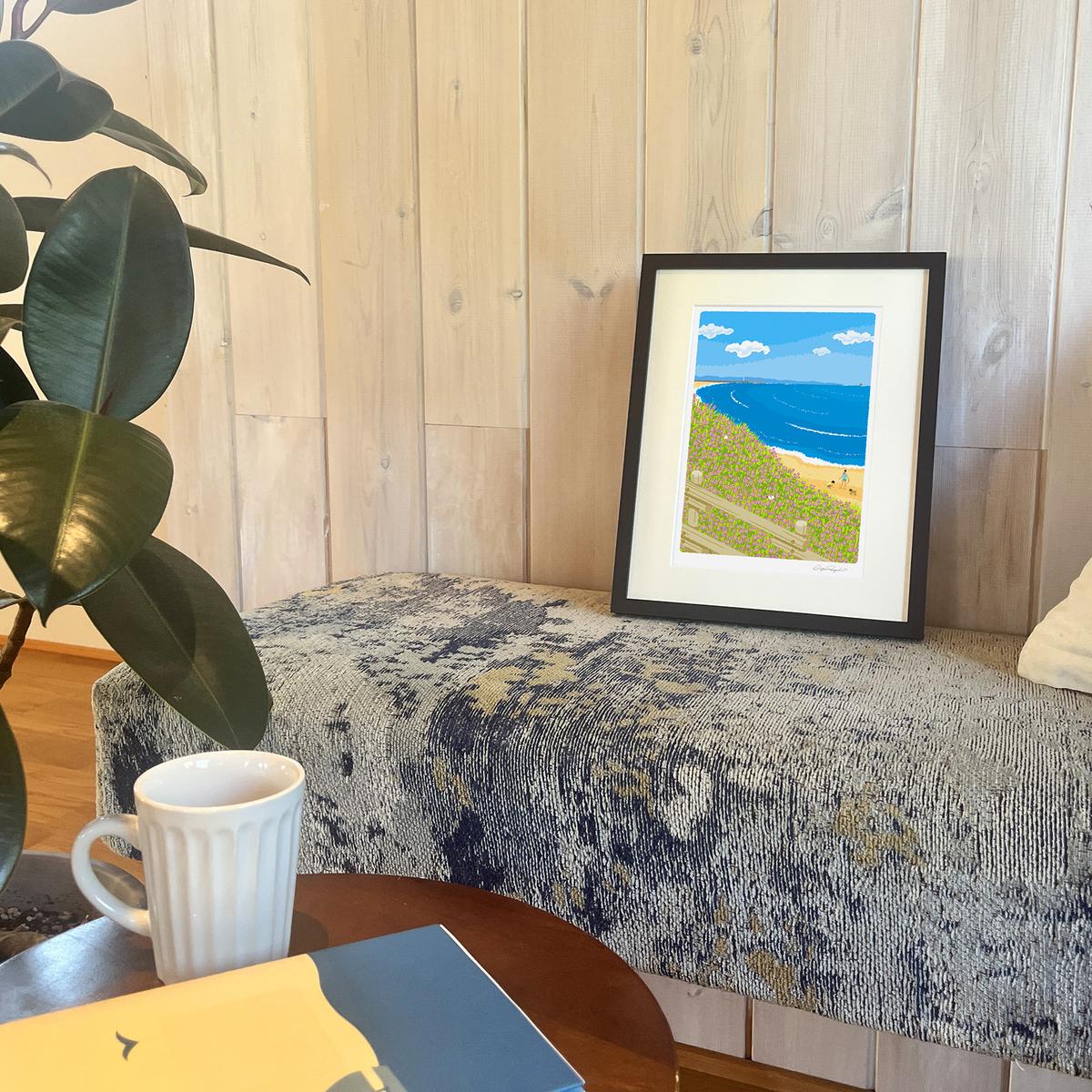 7. 湘南・茅ヶ崎で描く、海を感じるイラストアート 『 湘南ランドスケープ08:海辺のハマダイコン 』 ジークレーアートフレーム (小) /絵画 風景 版画
