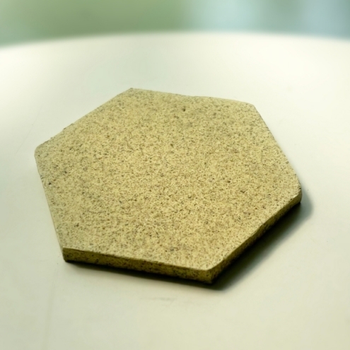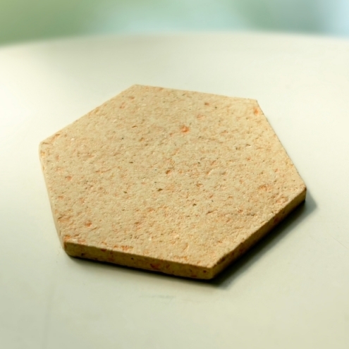 皮や搾りかすなどの食の未利用素材を配合したアップサイクル・ブランド「UP FOOD STONE」の、正六角形の形をしたプレートです。