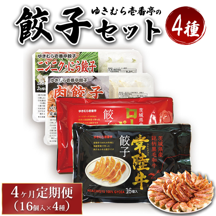 【定期便4ヶ月】ゆきむら壱番亭の4種の餃子セット※離島への配送不可