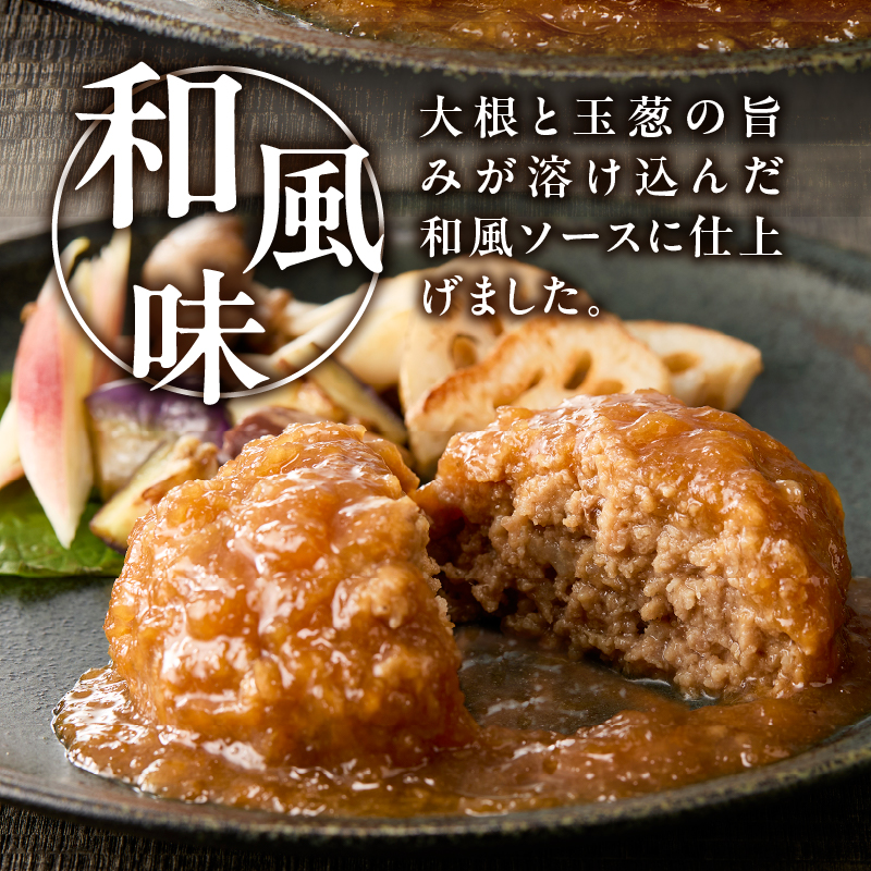 【説明】国産具材(牛肉・豚肉・玉ねぎ)で柔らかく練りあげたこだわりのハンバーグです。更に、特製ソースは国産大根・玉ねぎをすりおろして甘めの醤油味でお子様も喜ぶ味付。白だしなどで和風の香りを出しながら爽やかな甘さに仕上げたソースが柔らかなハンバーグに絡み、ご飯にぴったり。湯煎調理で手軽に楽しめるハンバーグです。