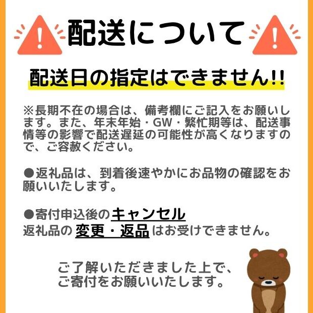 ・また、返礼品発送のタイミングと、お引越し等による配送先登録住所が異なる場合もございます。早急に変更のご連絡をお願い致します。