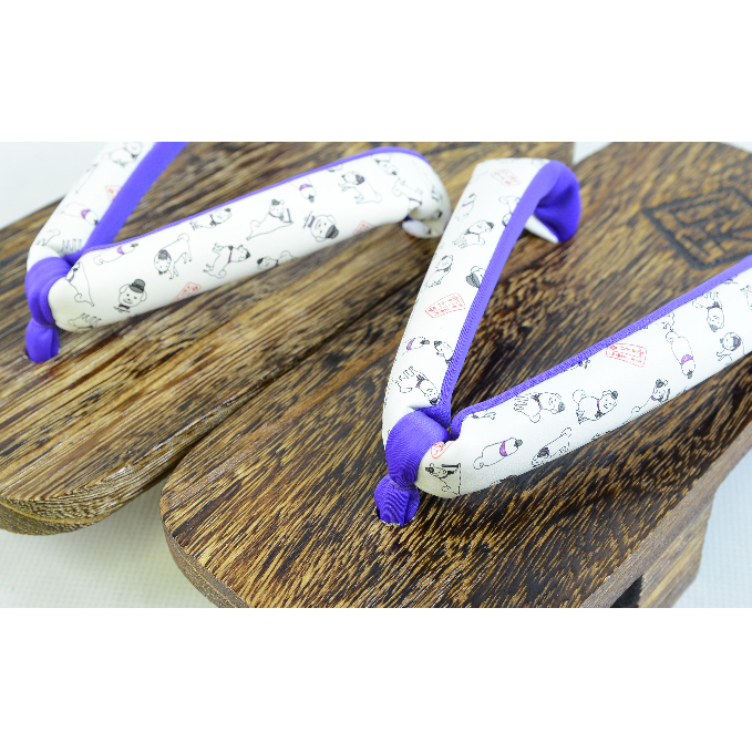 王寺町のマスコットキャラクター、聖徳太子の愛犬「雪丸(ゆきまる)」の柄入り鼻緒の下駄です。