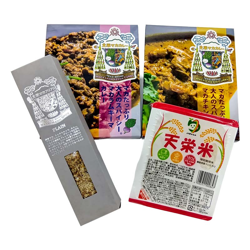 マカマシマシ!大人のスパイシーカレーと天栄米のパックライス。