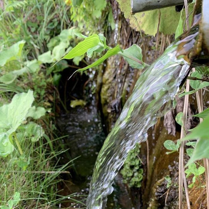 〇栽培に使用する清水は山から出た水を一番目に使用しています。地域の飲み水ともなっている水で良質な澄んだ清水です
