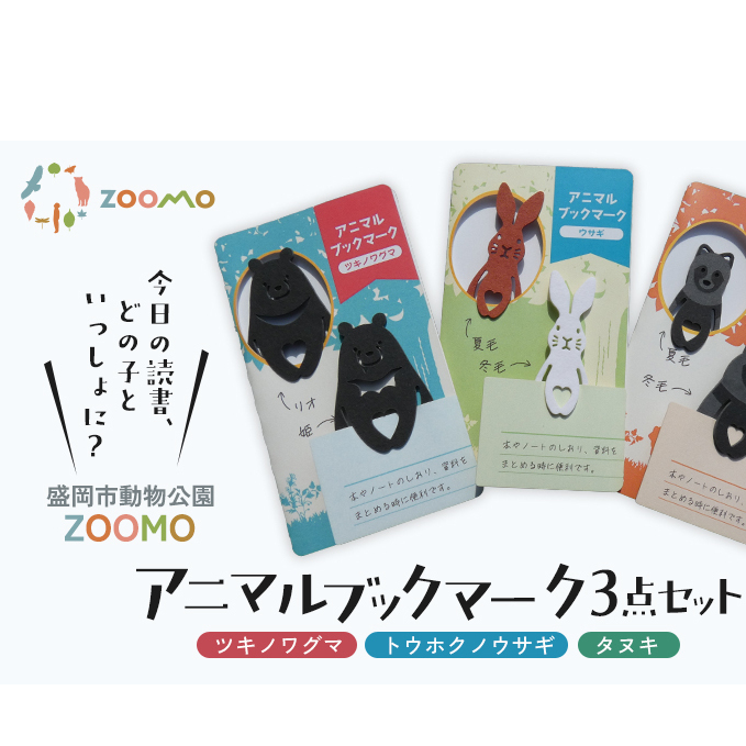 ブックマーク 3点 セット 詰め合わせ 盛岡市動物公園 ZOOMO オリジナル アニマルブックマーク オリジナルグッズ しおり 紙製 脱プラ グッズ 文房具 事務用品 雑貨 小物雑貨 動物園 動物愛護 支援 岩手 岩手県 盛岡市