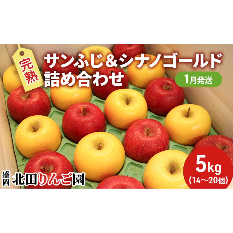 先行予約【1月発送】盛岡北田りんご園 完熟サンふじ&シナノゴールド詰め合わせ 約5kg(14~20玉) 果物類 王様 果汁 甘 酸味 バランス 晩生種 代表 黄色い シャッキシャキ 濃厚 人気 貯蔵性