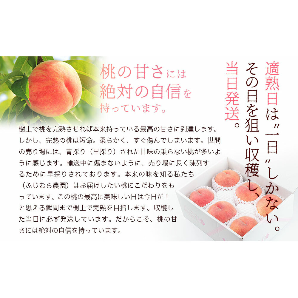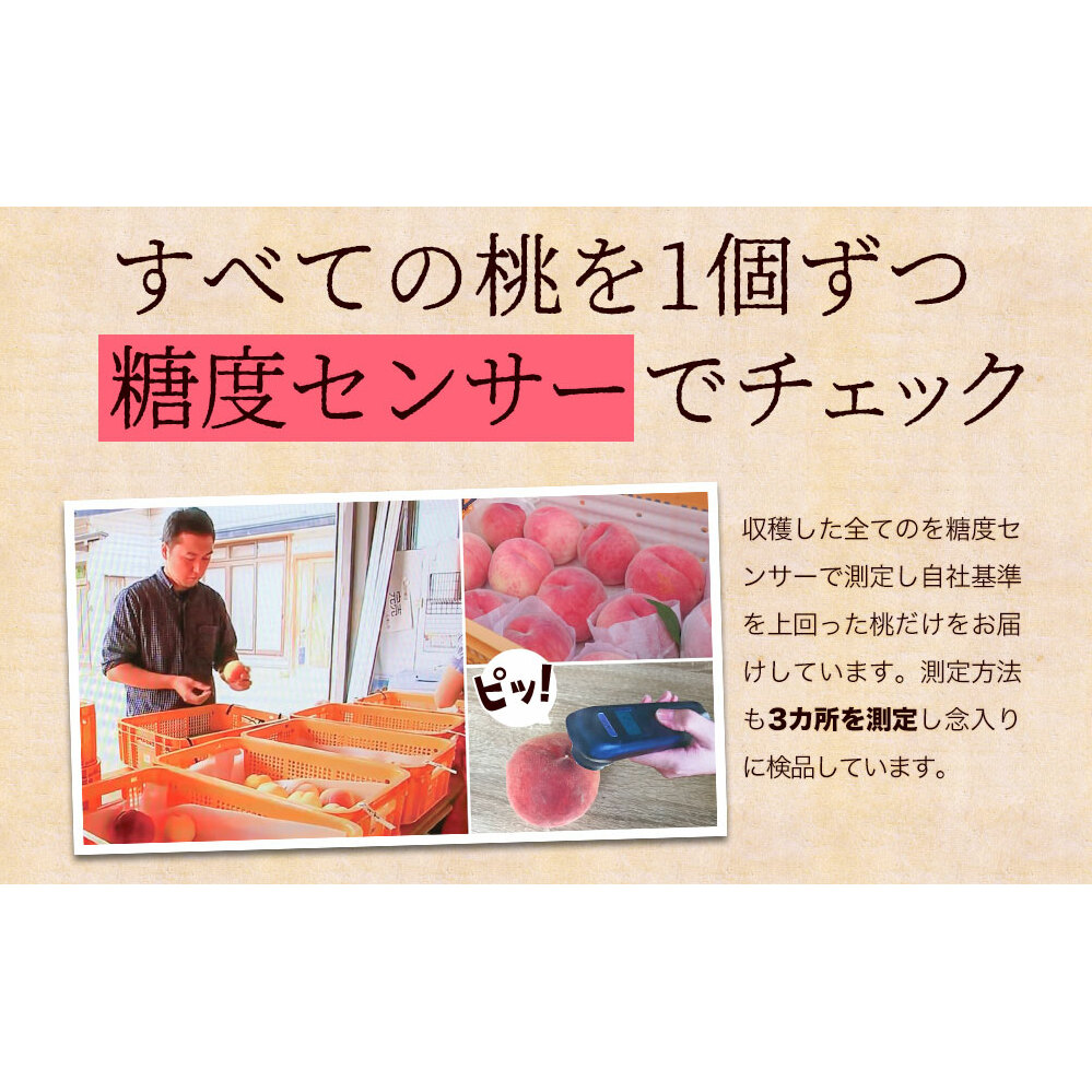若干の大きさや色付き違いがございますが品質ともに厳選の白桃をお届けします。