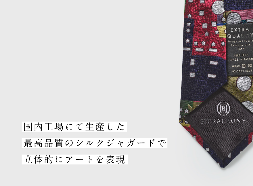 日本の伝統的技術と作家のコラボレーションにより生まれた、HERALBONYのアートネクタイは、シルク100%の贅沢な一品。