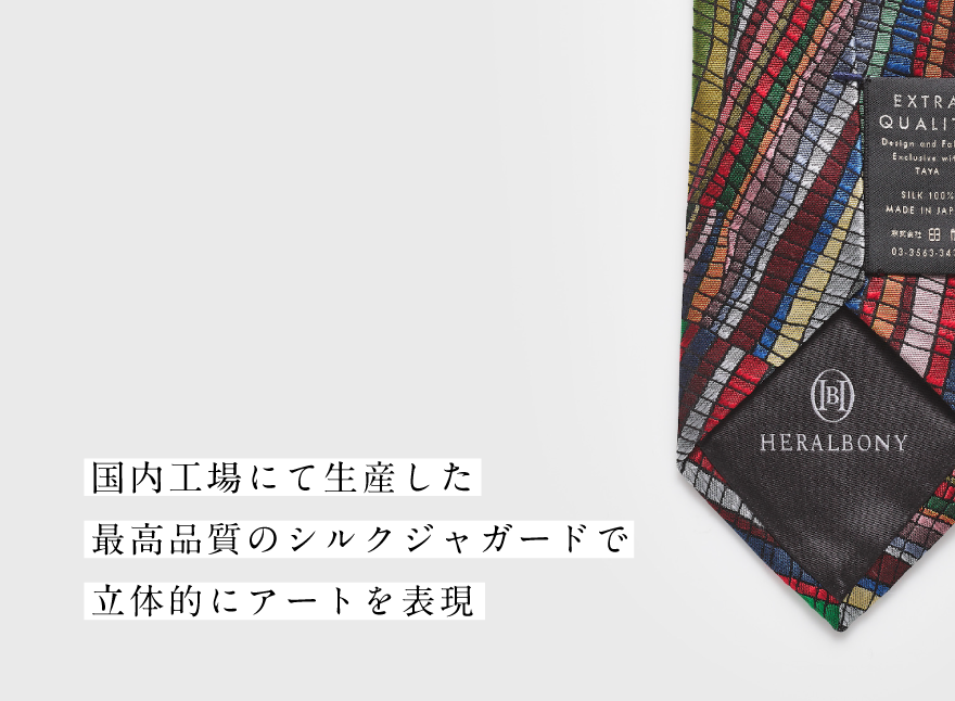 日本の伝統的技術と作家のコラボレーションにより生まれた、HERALBONYのアートネクタイは、シルク100%の贅沢な一品。