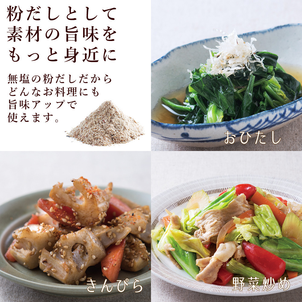 パックの中身は石臼式粉砕方法で本当に細かくなっていますので、袋を破って粉だしとしてもお使いいただけます。
