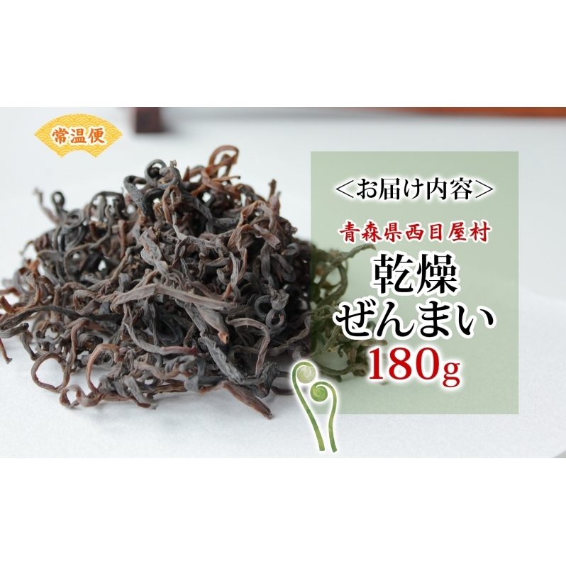 乾燥ゼンマイ 180g ぜんまい 山菜 干しぜんまい 山の幸 和え物 具材 伝統食 野菜 きのこ 油揚げ こんにゃく 炒め物 ごま油 塩 ナムル マヨネーズ和え お味噌汁 具 保存食 ストック 送料無料 一般財団法人ブナの里白神公社 青森県 西目屋村
