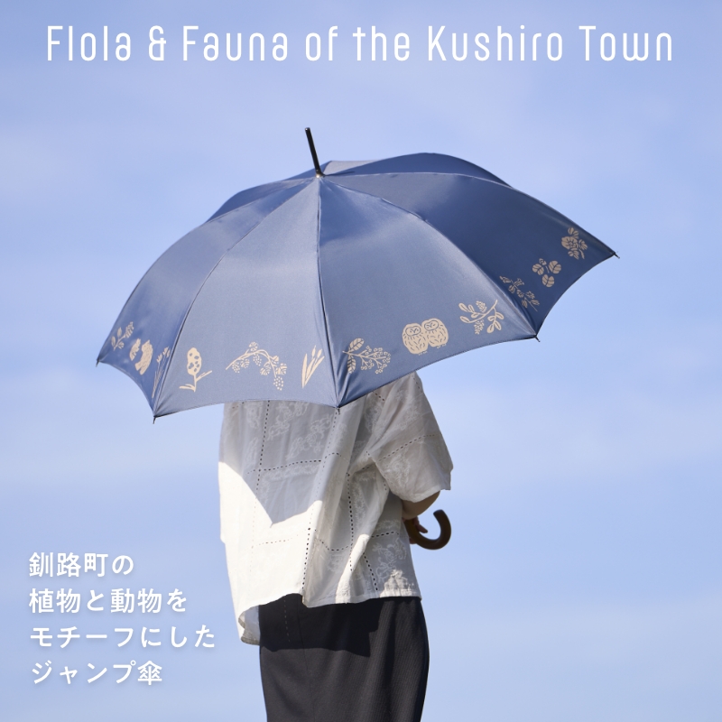 釧路町在住の作家、磯優子による「釧路町の動植物」をモチーフにしたジャンプ傘です。