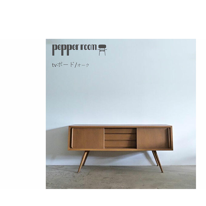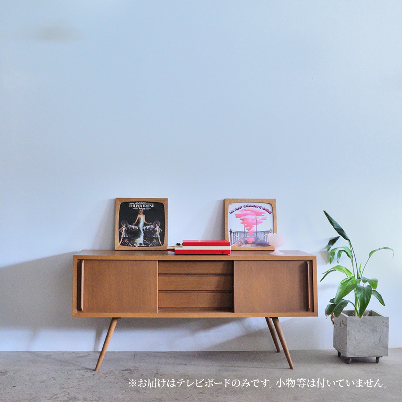 北欧風の木製TVボードです。脚付きの家具で胴体を斜めに勾配をつけているシンプルなデザインです。サイドボードやオーディオボードなどの収納棚としても使用できます。