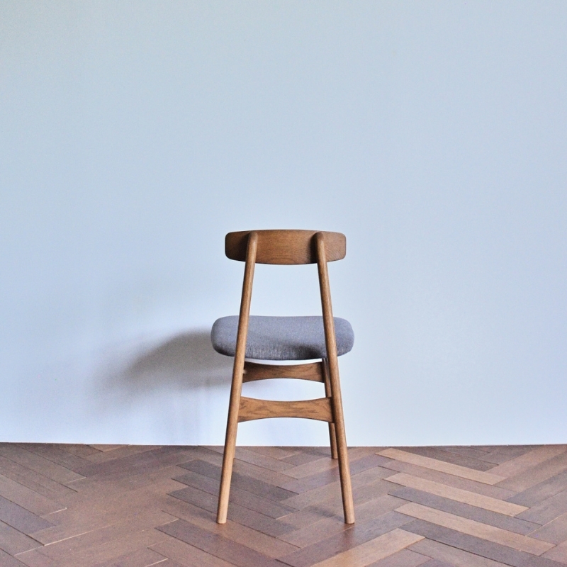 作業用に適した木製チェアです。一般的なダイニングチェア に比べて傾斜を少なくし、背板は低くすることで、姿勢を正しく保てるようにしています。