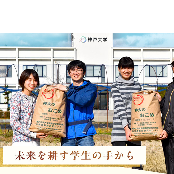 兵庫県加西市に位置する、神戸大学の附属農場である食資源教育研究センターで栽培されたお米です。
