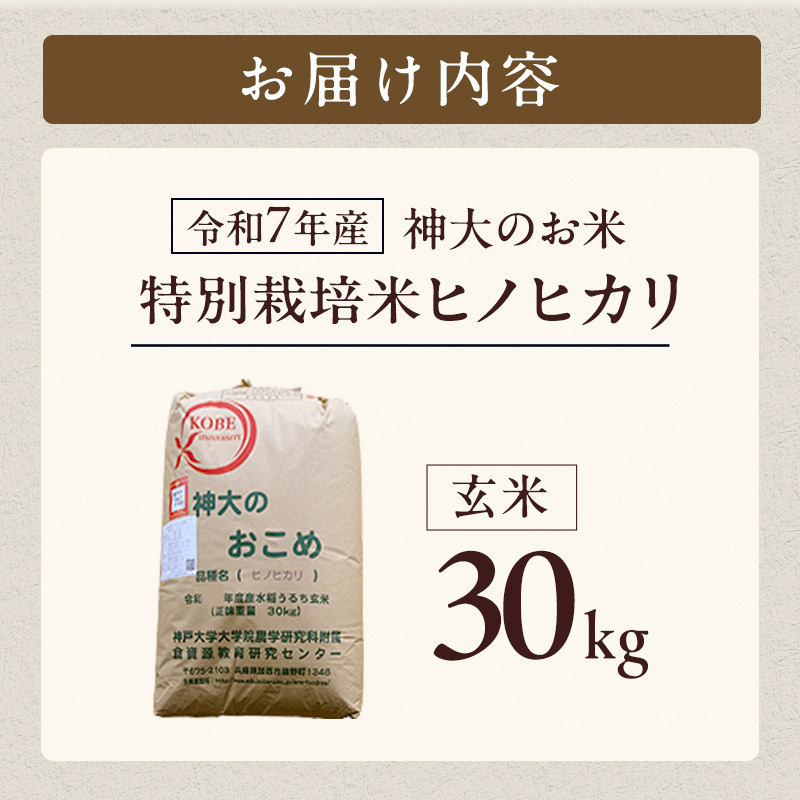 米 【令和7年産】神大のおこめ(特別栽培米ヒノヒカリ)玄米30kg お米