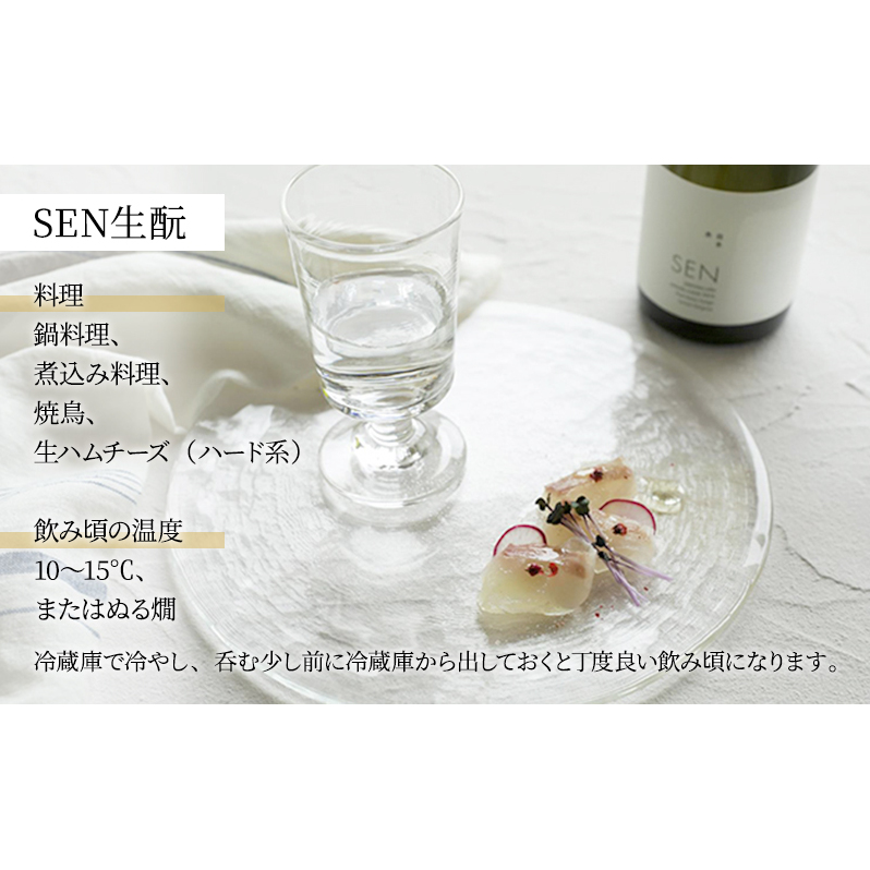 同じ銘柄で蔵元が異なる純米酒と純米大吟醸酒、2つのSENを堪能できるセット。