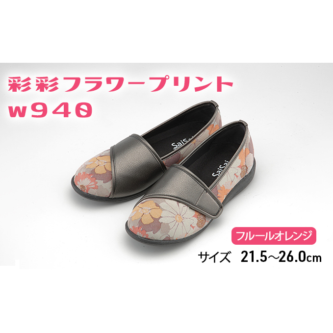 7. 彩彩フラワープリントW940 フルールオレンジ[ 靴 婦人靴 シューズ レディース ] ファッション 柔らかい素材 撥水加工 やさしいデザイン